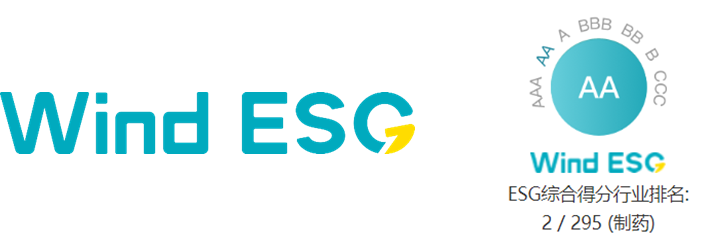 近期,中国领先的金融信息服务组织万得(Wind)公布其2024年度企业环境、社会及管治(ESG)评级结果——中国生物制药ESG 评级由A级提升至AA级。截至发文日,集团ESG综合评分在中国制药行业295家企业中位列第2名。根据《Wind ESG 评级方法学》,评级为AA级的公司被定义为“企业管理水平高,ESG风险低,可持续开展能力强”。