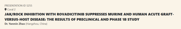 [5] Yanmin Zhao, et al. JAK/ROCK INHIBITION WITH ROVADICITINIB SUPPRESSES MURINE AND HUMAN ACUTE GRAFT-VERSUS-HOST DISEASE: THE RESULTS OF PRECLINICAL AND PHASE 1B STUDY.2025 EHA.